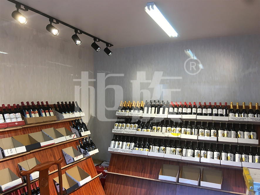 展柜外觀使用黑色噴漆,簡(jiǎn)潔大氣。內(nèi)部平面裝修,搭配射燈,視覺明凈,可以很好地將顧客的注意力吸引至琳瑯滿目的紅酒產(chǎn)品上。