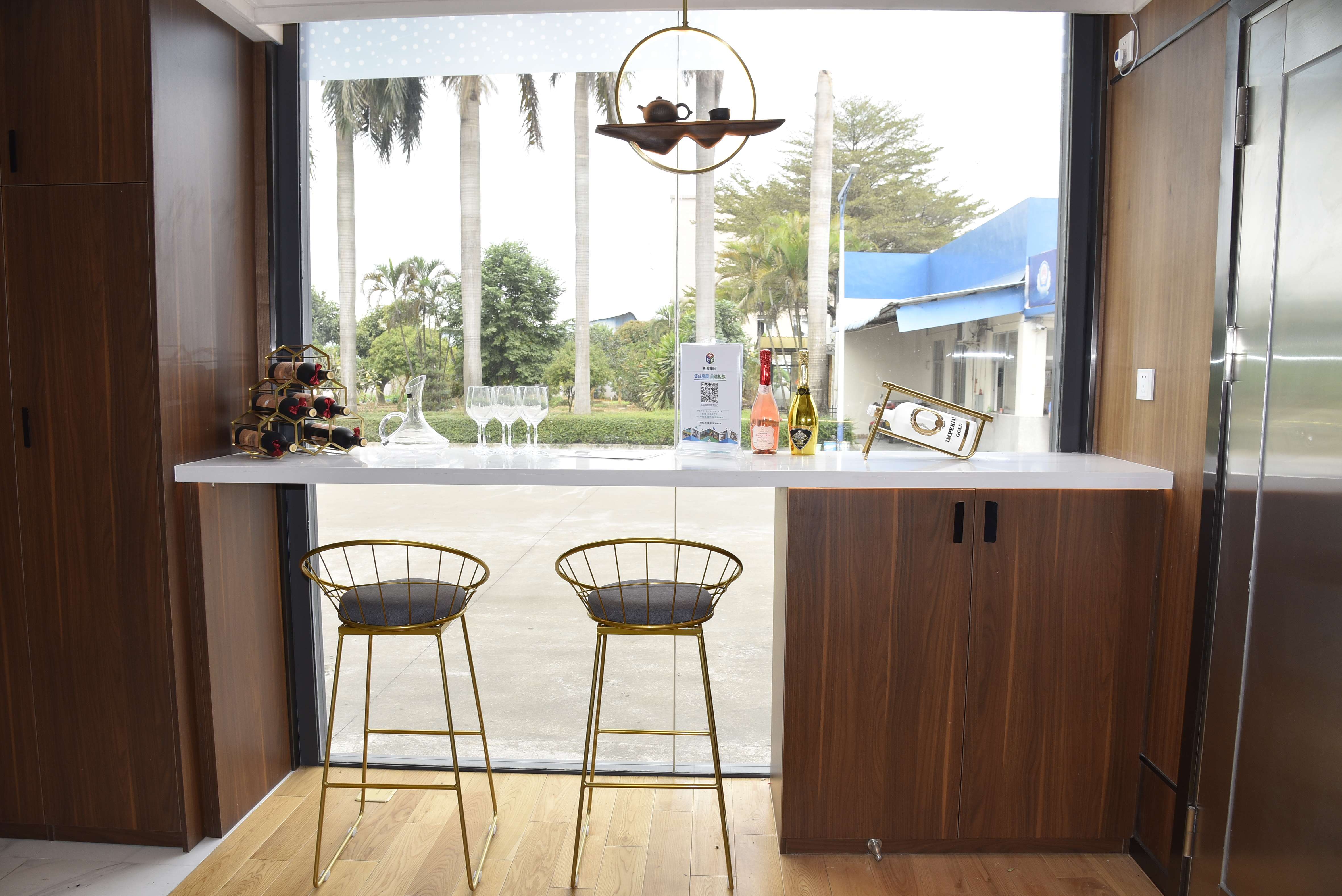 在功能布局上,一層起居、二層休閑。一層進(jìn)門右邊為吧臺、左邊沙發(fā)茶幾,上部天花為暗藏小玄機的升降床。衛(wèi)生間、洗漱臺與臥室相連,飄窗小陽臺,處處體現(xiàn)的都是居住的方便與舒適。大面積落地窗,就是為風(fēng)景好的沙灘、海邊等度假地設(shè)計的,室內(nèi)生活溫馨小資、戶外美景賞心悅目,陶醉其中、無限樂趣。