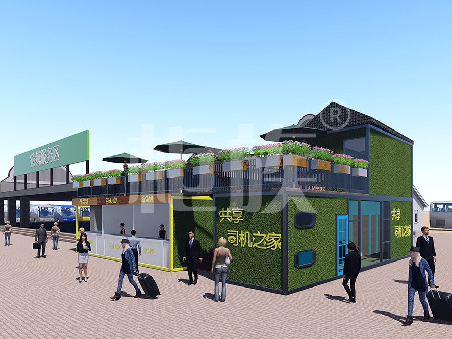 我們針對不同車流量的服務區(qū),設計了不同大小和造型的集裝箱休息室,并延展了其功能,包括電動車充電樁、太空倉、單間、按摩椅、洗衣機、沖涼房等。