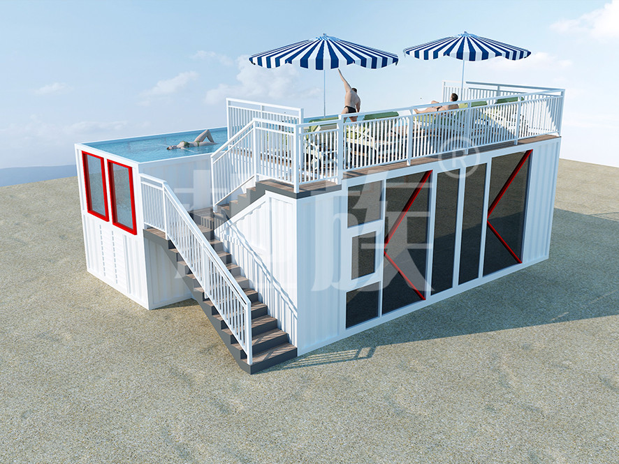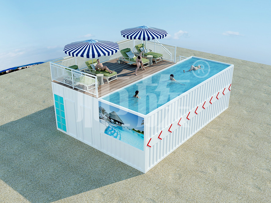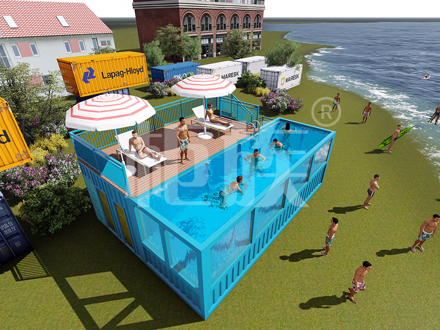 集裝箱泳池可以完全在工廠預(yù)制完成,占地小、造價低,適合庭院、海邊的度假地、以及其他公共游樂場所使用。