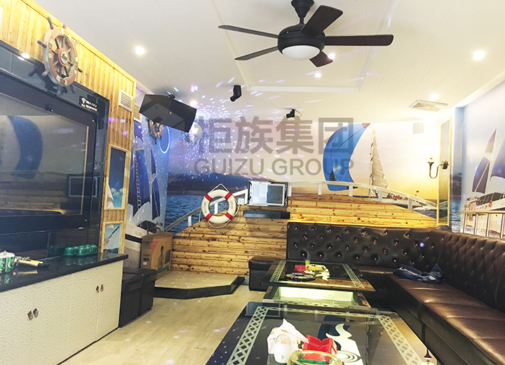 外觀弧形線條很好的搭配了音樂元素,凸顯集裝箱個性化設(shè)計(jì)特點(diǎn)。內(nèi)部唱歌、休閑設(shè)施齊全。